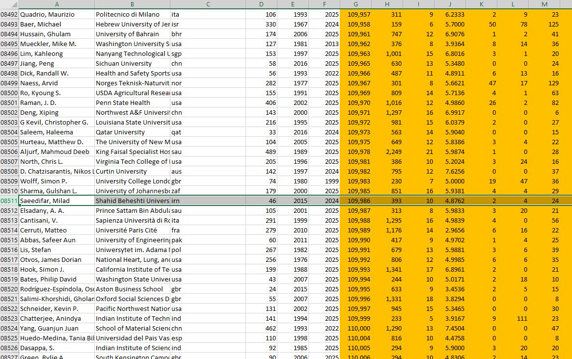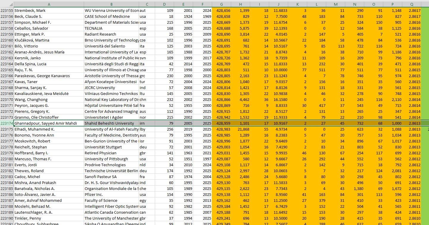 بر اساس این گزارش که در تاریخ 19 سپتامبر 2025 در مجله PLOS به چاپ رسیده، دو مدل پایگاه داده ارائه شده است. ارزیابی بر پایه مدل اول تا پایان سال 2024 که نمایانگر شاخص عملکرد بلندمدت پژوهشگران پیشکسوت است و ارزیابی بر پایه مدل دوم که بر اساس داده‌های یکساله ۲۰۲۱ است
