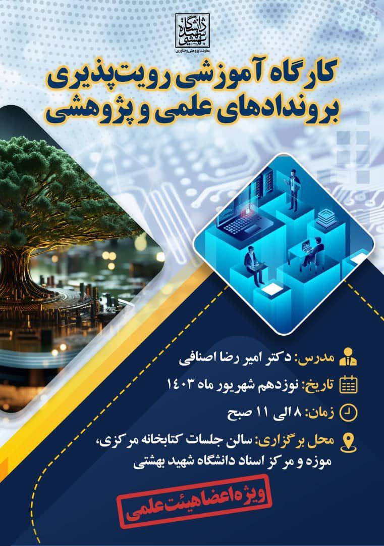 معاونت پژوهشی و فناری دانشگاه شهید بهشتی برگزار می کند: کارگاه آموزشی رویت‌پذیری بروندادهای علمی و پژوهشی، ویژه اعضای هیئت علمی
